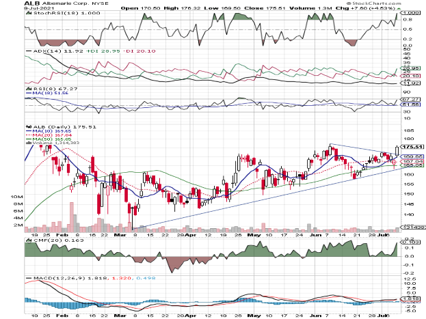 turned bullish. BUY! Albemarle Corp (ALB-NYSE) @ $176.50 Stop: